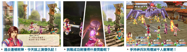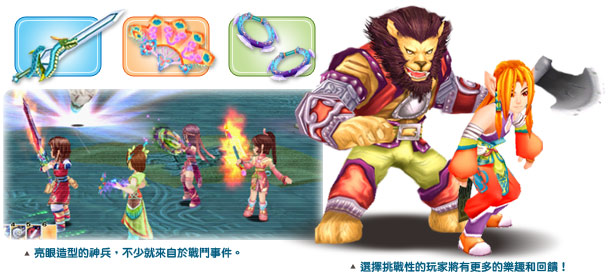 戰鬥事件的特殊攻略法,無論是劇情相關、或是無厘頭的規則,依序傷害、連續擊殺、限時挑戰,眾多不同的挑戰法,都將考驗著玩家們的智慧。而結合各種資源與裝備完成事件的同時,玩家們也將體驗其他遊戲系統的豐富樂趣。 |