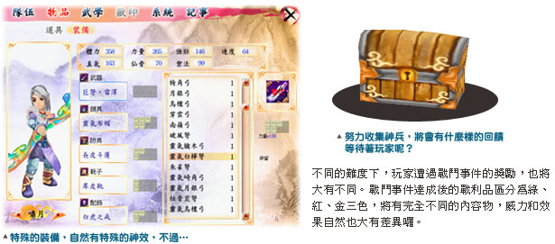 除了提供玩家不同的趣味和獎勵外,部分裝備將可繼承到二次遊戲,使第一次玩家不幸挑戰失敗的遺憾,將有一雪前恥的機會!之前孤立無援、實力懸殊的戰鬥,將不再是不可能的任務。