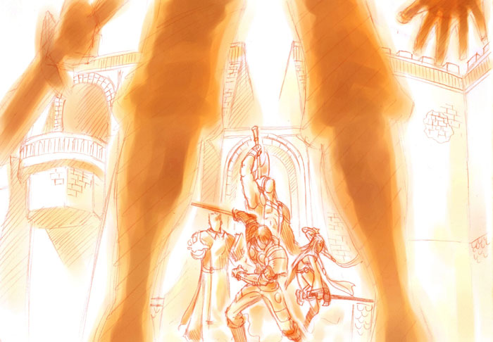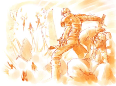 | ▲被視為南法爾馬力克和平曙光的和會,竟在最後一天被數位蒙面人 強行闖入。各國矛頭指向唯一沒被蒙面人殺害的雅曼共和國使者以 及負責保護雅曼共和國使者的血獅鷲傭兵團,和會不但當場宣告破 裂,同時雅曼共和國使者及血獅鷲傭兵團立即被三國聯軍當作追緝 的對象............ |